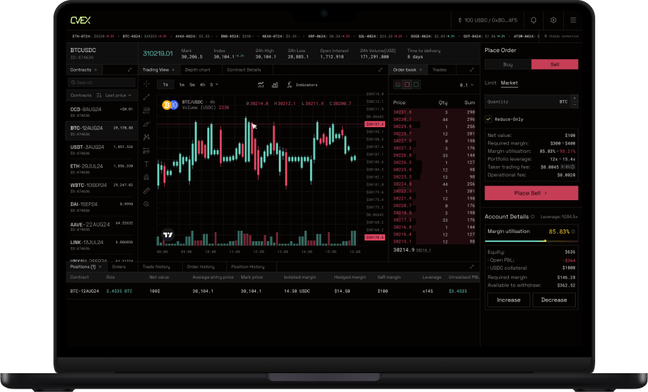 CVEX uses Value-at-Risk (VaR) calculations to adjust your required collateral in real-time as positions open. This ensures that your margin is appropriate to market volatility. Additionally, we offer cross-margin capability and a liquidation protocol to protect users.