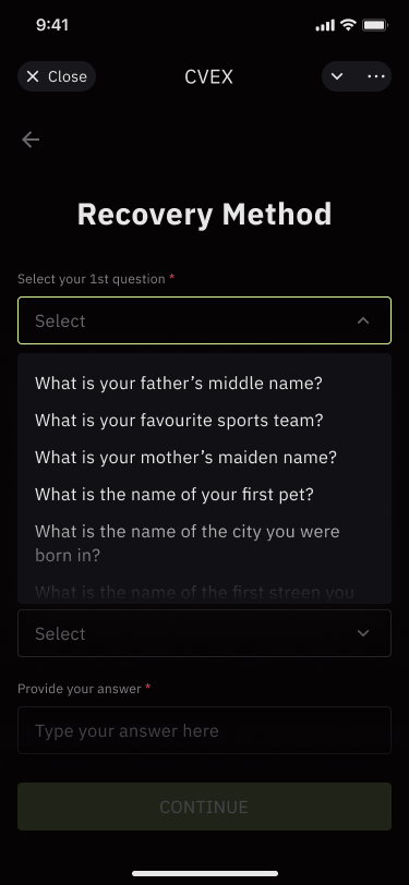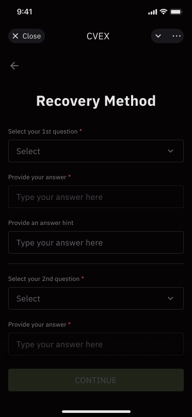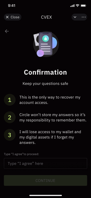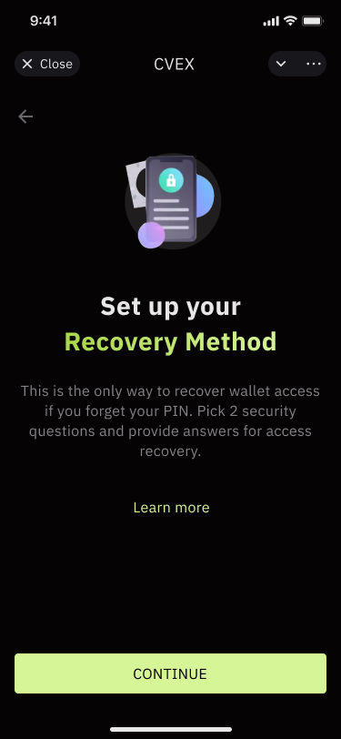 ⚠ Important: If you forget both your PIN and recovery answers, you will lose access to your wallet. We highly recommend writing them down and keeping them safe.