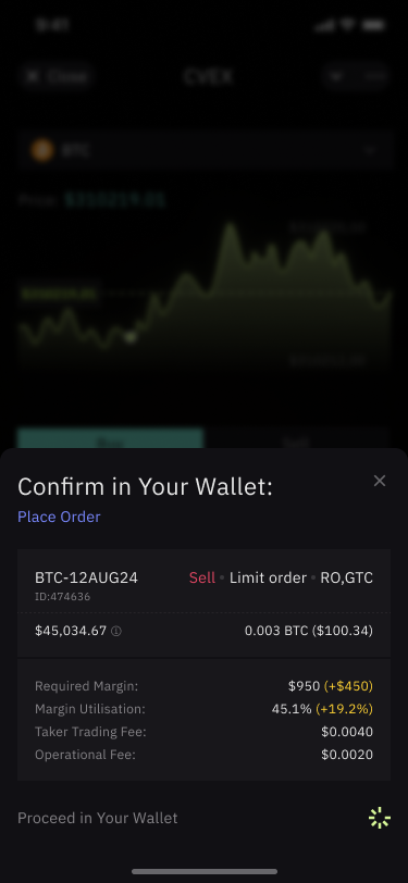 To finalise your trade, confirm the transaction in your wallet and enter your PIN code for security.
