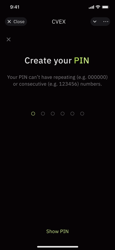 After clicking “Sign Up”, you’ll be prompted to set up a PIN code. This PIN is your first layer of security, protecting your account from unauthorised access. Enter a secure PIN and confirm it to proceed.