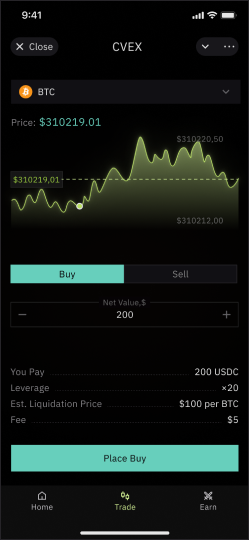 Currently, the app supports market orders for buying and selling. Simply choose whether you want to open a long or short position, then enter the amount of stablecoins you’d like to trade.