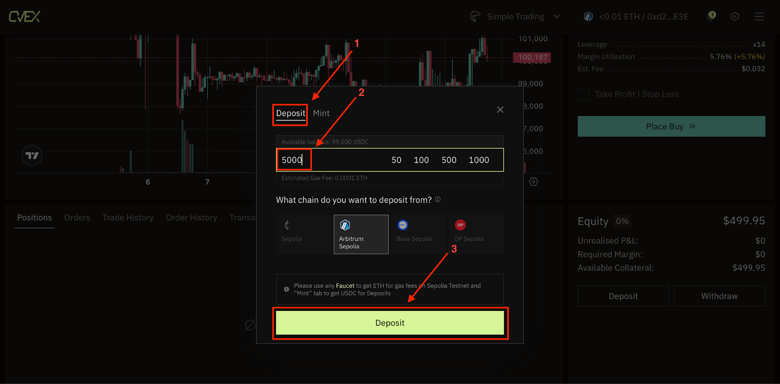 Get a taste of the mainnet experience! Native deposits and withdrawals now require ETH for gas fees alongside USDC for transactions, streamlining the process and preparing you for live trading.